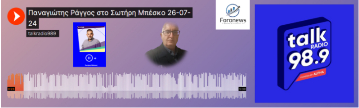 Ο Παναγιώτης Ράγγος στο Σωτήρη Μπέσκο 26-07-24 Ακούστε ΕΔΩ την εκπομπή στο ραδιόφωνο του Talk Radio 98.9 με τον Σωτήρη Μπέσκο καλεσμένος ο Παναγιώτη Ράγγος