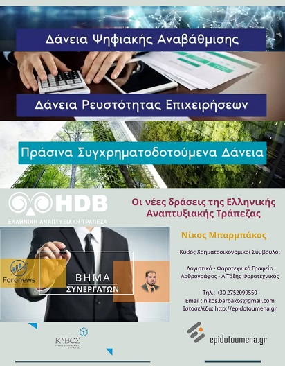 Οι νέες δράσης της Ελληνικής Αναπτυξιακής Τράπεζας Ξεκίνησε ήδη η υλοποίηση των τεσσάρων νέων δράσεων της Ελληνικής Αναπτυξιακής Τράπεζας (Ε.Α.Τ.) οι οποίες στηρίζουν με χαμηλότοκες χρηματοδοτήσεις την μικρομεσαία επιχειρηματικότητα.