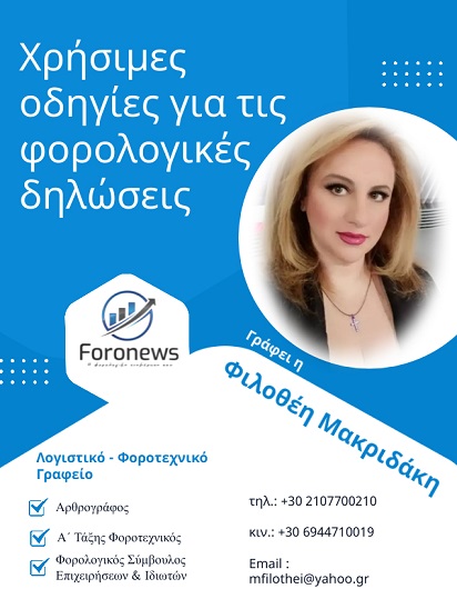Χρήσιμες οδηγίες για τις φορολογικές δηλώσεις Είμαστε στην τελική ευθεία για να ξεκινήσει η υποβολή των φορολογικών δηλώσεων. Αγαπητοί συνάδελφοι αλλά και φορολογούμενοι πολίτες, ας δούμε κάποια σημεία που είναι χρήσιμο να τα γνωρίζεται !