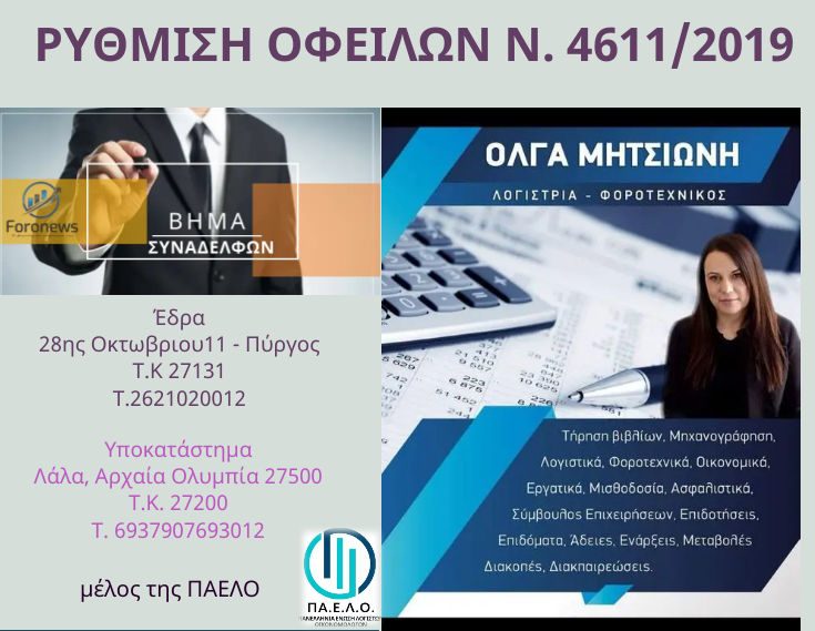 Ρύθμιση Οφειλών Ν. 4611/2019 - από 36-120 δόσεις Σε ρύθμιση χρεών από 36-120 δόσεις προχωρά για χιλιάδες πολίτες προχωρά η κυβέρνηση. Σε ό,τι αφορά τους οφειλέτες σε Εφορία-Ταμεία, το οικονομικό επιτελείο της κυβέρνησης ανακοίνωσε ότι δημιουργείται ένα νέο πλαίσιο.