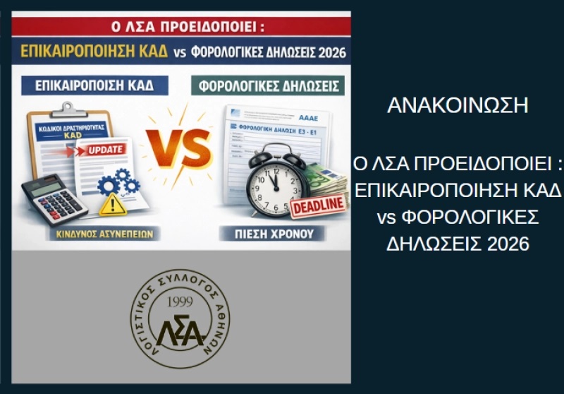 Ο ΛΣΑ ΠΡΟΕΙΔΟΠΟΙΕΙ : ΕΠΙΚΑΙΡΟΠΟΙΗΣΗ ΚΑΔ vs ΦΟΡΟΛΟΓΙΚΕΣ ΔΗΛΩΣΕΙΣ 2026