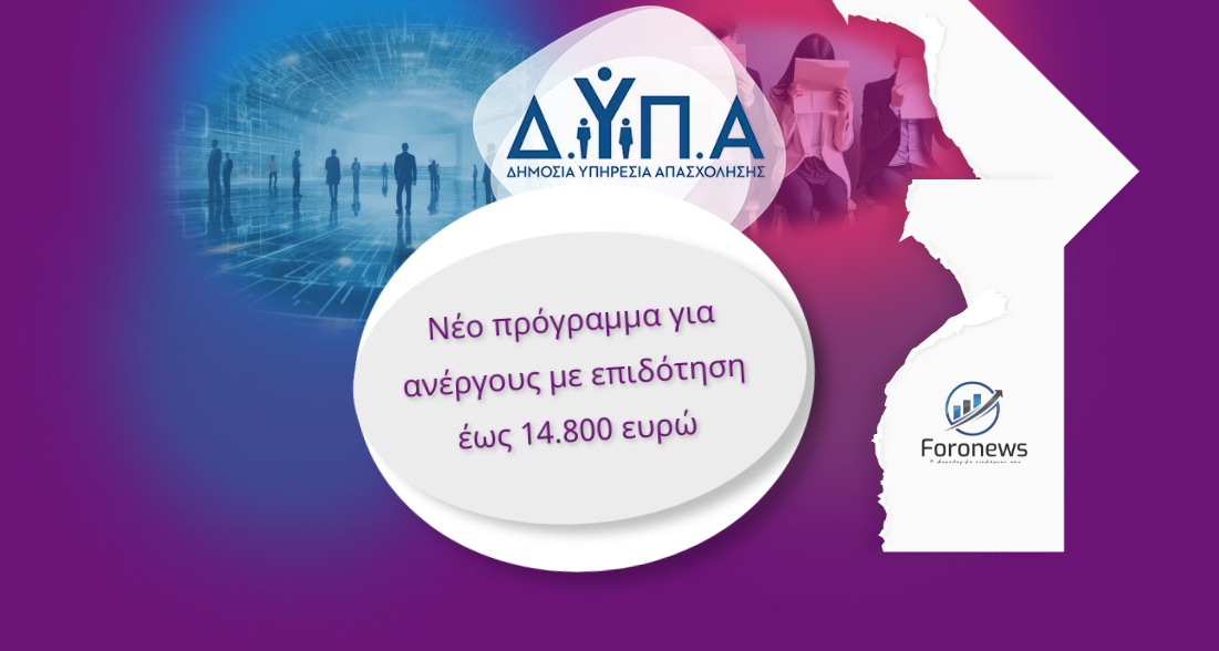 Ξεκινάει νέο «Πρόγραμμα νέας επιχειρηματικότητας για 1.900 ωφελούμενους ηλικίας 30-55 ετών της ΔΥΠΑ - ΟΑΕΔ, με έμφαση στην ψηφιακή οικονομία» που συγχρηματοδοτείται από το Ελληνικό Δημόσιο και το Ευρωπαϊκό Κοινωνικό Ταμείο στο πλαίσιο του Ε.Π Ανταγωνιστικότητα- Επιχειρηματικότητα και Καινοτομία (ΕΠΑνΕΚ).