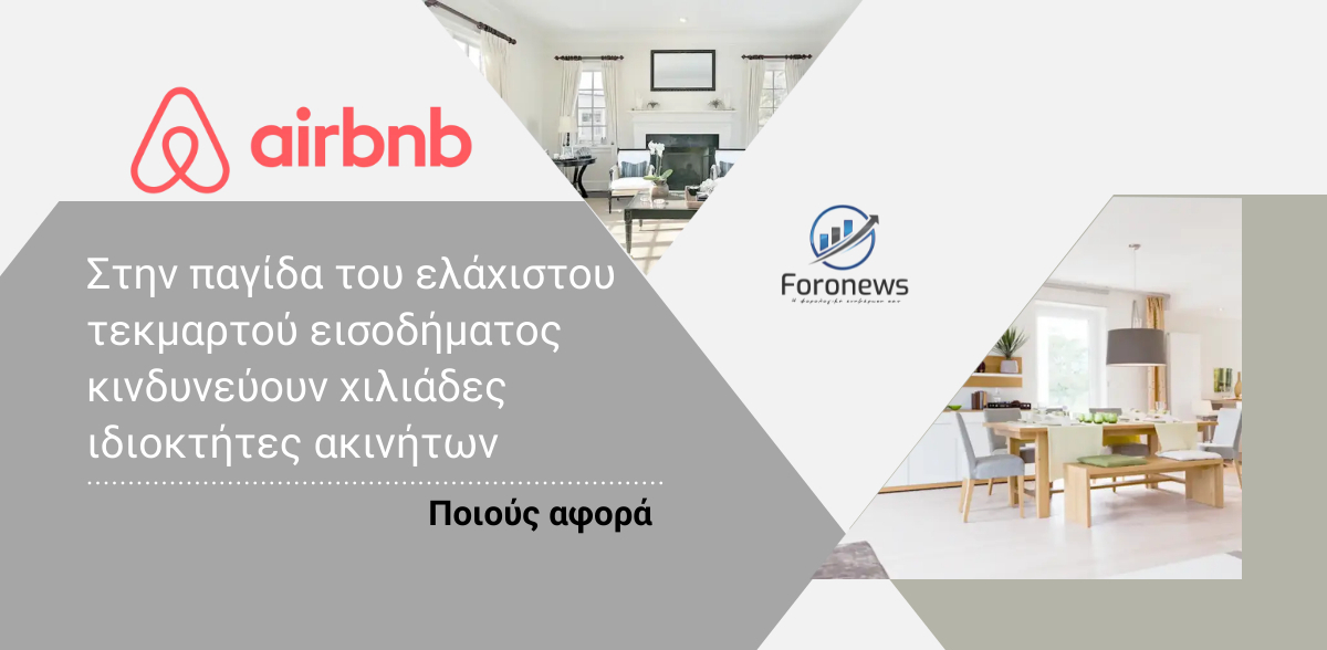 Με τον νέο τεκμαρτό τρόπο υπολογισμού θα φορολογούνται και τα φυσικά πρόσωπα που πραγματοποιούν βραχυχρόνιες εκμισθώσεις τριών ή περισσότερων ακινήτων τους μέσα από την πλατφόρμα Airbnb ή αντίστοιχες άλλες πλατφόρμες.
