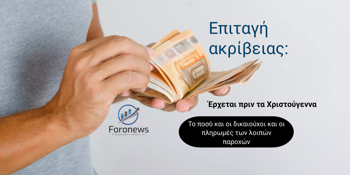 Στο πλαίσιο αυτό και υπό την προϋπόθεση ότι δεν θα υπάρξει κάποια δυσμενής εξέλιξη, η κυβέρνηση θα χορηγήσει και εφέτος την επιταγή ακρίβειας σε περίπου 1 εκατ. φορολογούμενους (χαμηλοσυνταξιούχοι, μακροχρόνια άνεργοι, οικογένειες με χαμηλά εισοδήματα, άτομα με αναπηρία κ.λπ.)