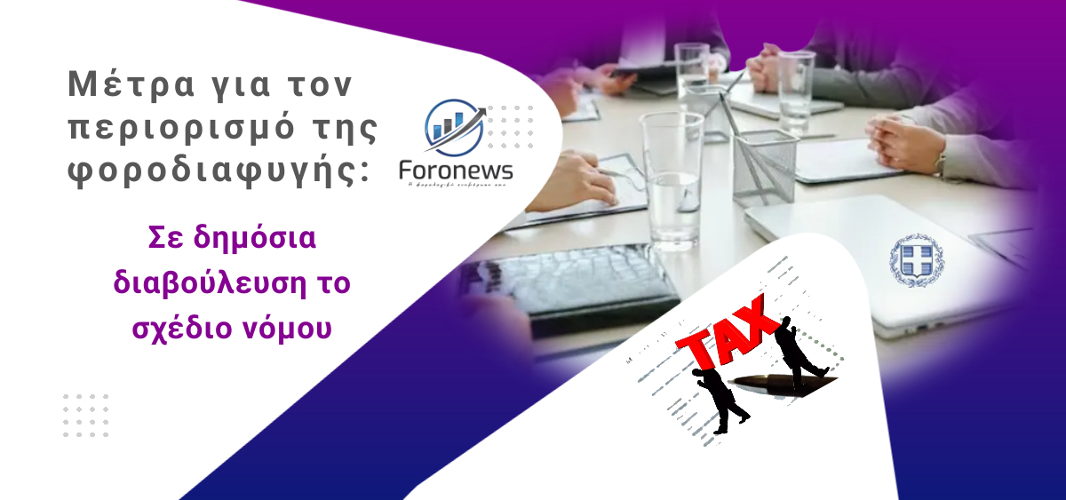 Σε δημόσια διαβούλευση τίθεται από σήμερα το σχέδιο νόμου «Μέτρα για τον περιορισμό της φοροδιαφυγής» του υπουργείου Εθνικής Οικονομίας και Οικονομικών.