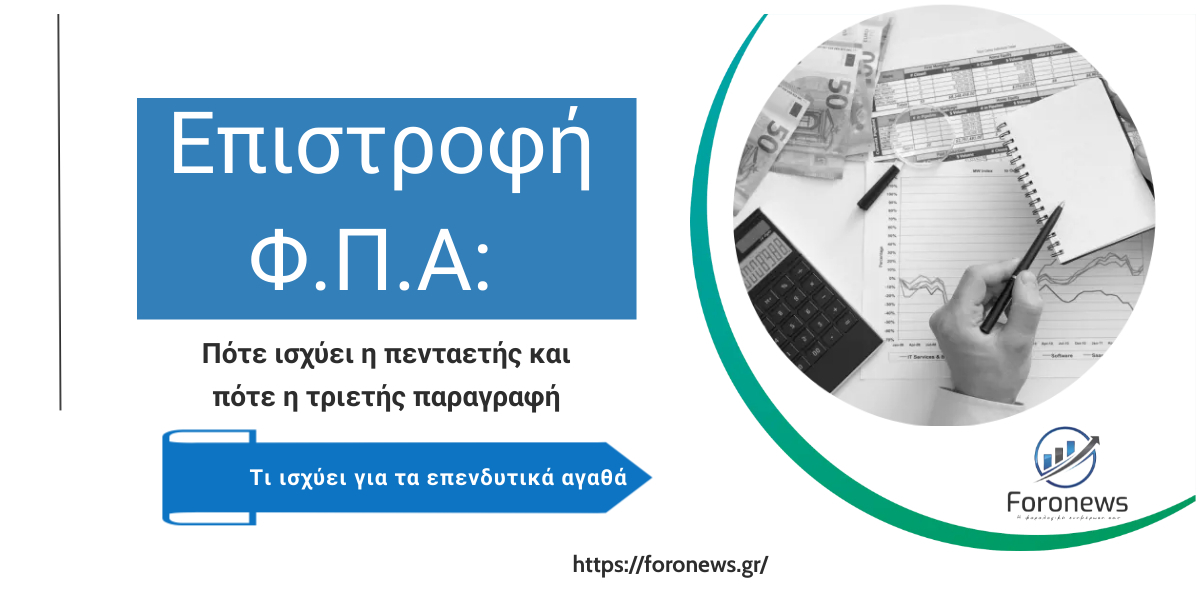 Συμπέρασμα όλων των ανωτέρω. Η αξίωση για την επιστροφή πιστωτικού υπολοίπου ΦΠΑ που αφορά αγαθά επένδυσης υπόκειται σε πενταετή παραγραφή, σύμφωνα και με απόφαση του Συμβουλίου Επικρατείας. Κατά συνέπεια, η αξίωση επιστροφής πιστωτικού υπολοίπου ΦΠΑ που προέρχεται από πράξεις όπως τα αγαθά επένδυσης, τα υλικά αγαθά, που ανήκουν στην κυριότητα μιας επιχείρησης και τίθενται από αυτή σε διαρκή εκμετάλλευση, τα κτίσματα ή άλλου είδους κατασκευές, τα δικαιώματα χρησιμοποίησης διπλωμάτων ευρεσιτεχνίας, σχεδίου, υποδείγματος, εμπορικού ή βιομηχανικού σήματος, δεν υπόκειται σε τριετή παραγραφή, αλλά στην πενταετή γενική παραγραφή (ΣτΕ 1112/2021). Κατά τα λοιπά ισχύουν τα οριζόμενα που αναφέρθηκαν ανωτέρω.