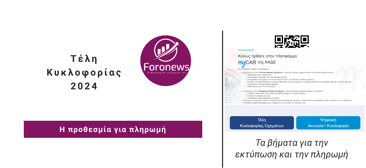 Τα τέλη κυκλοφορίας για το 2024 έχουν ήδη αναρτηθεί στην πλατφόρμα της Ανεξάρτητης Αρχής Δημοσίων Εσόδων (ΑΑΔΕ) και οι ιδιοκτήτες των οχημάτων μπορούν είτε με κωδικούς πρόσβασης είτε απλώς με τον αριθμό κυκλοφορίας του οχήματος και τον Αριθμό Φορολογικού Μητρώου να εκδώσουν τα ειδοποιητήρια και να εξοφλήσουν.