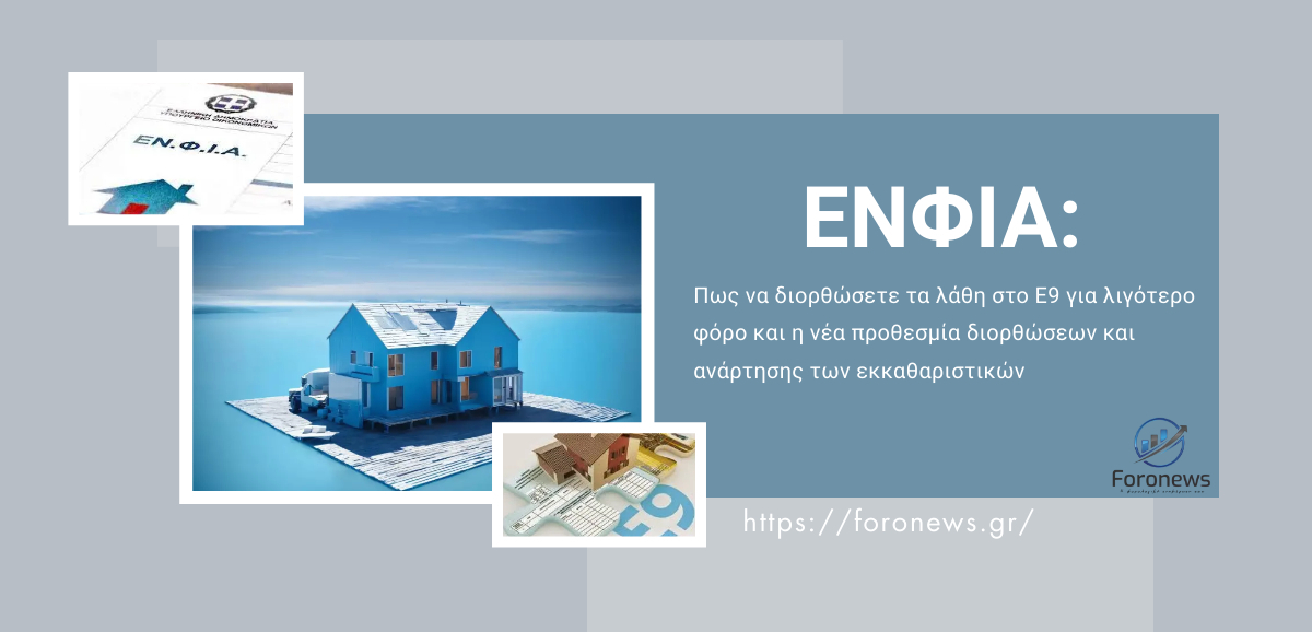 Από το 2025, ο ΕΝΦΙΑ θα εξοφλείται σε 12 μηνιαίες δόσεις. Η πρώτη δόση θα καταβάλλεται έως το τέλος Μαρτίου κάθε έτους. Διορθώσεις, προσθήκες και διαγραφές στα στοιχεία των ακινήτων που εμφανίζονται στο Ε9 θα πρέπει να γίνονται έως τις 31 Ιανουαρίου κάθε έτους. Σημειώνεται ότι ο ΕΝΦΙΑ υπολογίζεται με βάση τα στοιχεία που αποτυπώνονται στο Ε9.