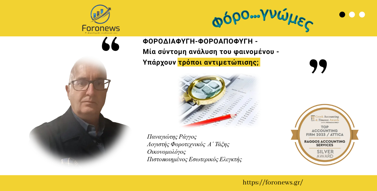 Ένα από τα μεγαλύτερα προβλήματα της ελληνικής οικονομίας είναι η φοροδιαφυγή, αλλά και η φοροαποφυγή σε όλα τα επίπεδα της οικονομικής δραστηριότητας ανεξαρτήτως από που προέρχεται (μισθωτοί, ελεύθεροι επαγγελματίες, φυσικά ή νομικά πρόσωπα κτλ).