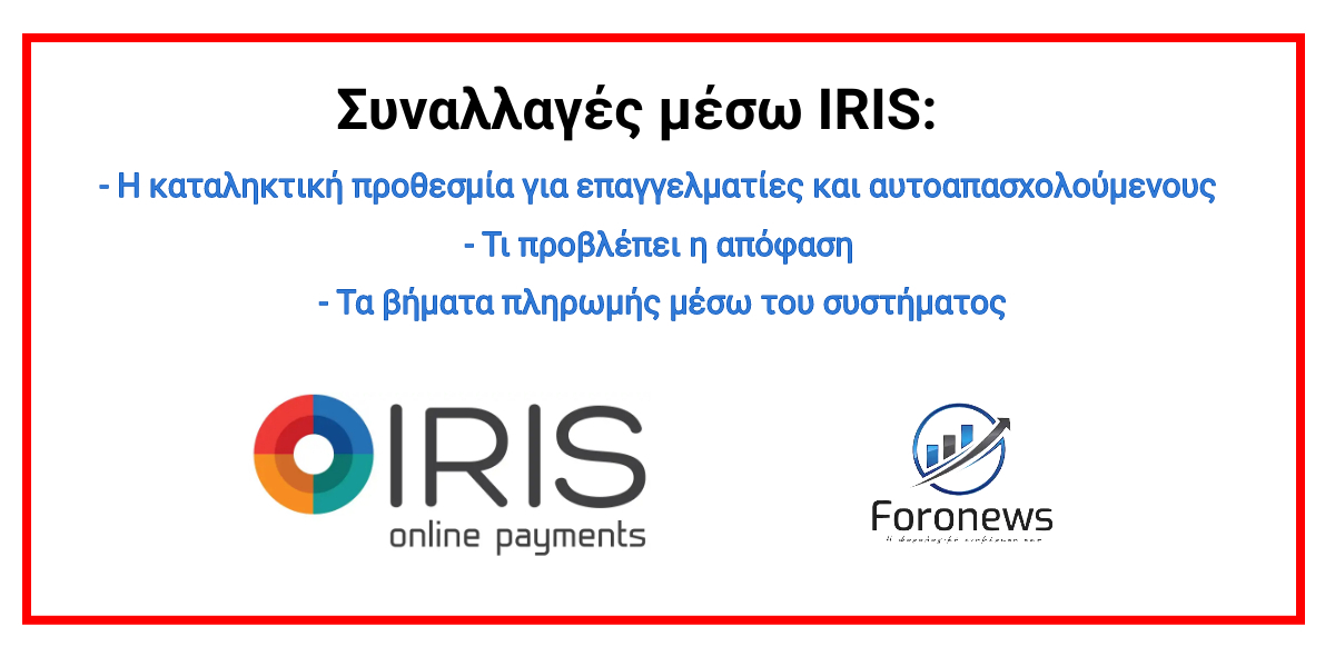Με το υπουργείο Οικονομικών να αποκλείει παράταση της προθεσμίας και να προαναγγέλλει την σταδιακή επέκταση του IRIS σε όλες τις επιχειρήσεις μέχρι τον Μάρτιο του 2025 οι αρμόδιες υπηρεσίες έχοντας στη διάθεση τους τα στοιχεία από τις τράπεζες θα ξεκινήσουν ελέγχους από την 1η Ιουλίου για τον εντοπισμό των παραβατών. Επίσης σε περίπτωση καταγγελιών πολιτών για μη αποδοχή πληρωμών με το IRIS από επαγγελματίες, αυτές θα κοινοποιούνται από τα αρμόδια όργανα στην ΑΑΔΕ και στην Γενική Γραμματεία Φορολογικής Πολιτικής προκειμένου να ληφθούν υπόψη κατά τον προγραμματισμό και τη διενέργεια ελέγχων, αρμοδιότητάς τους.