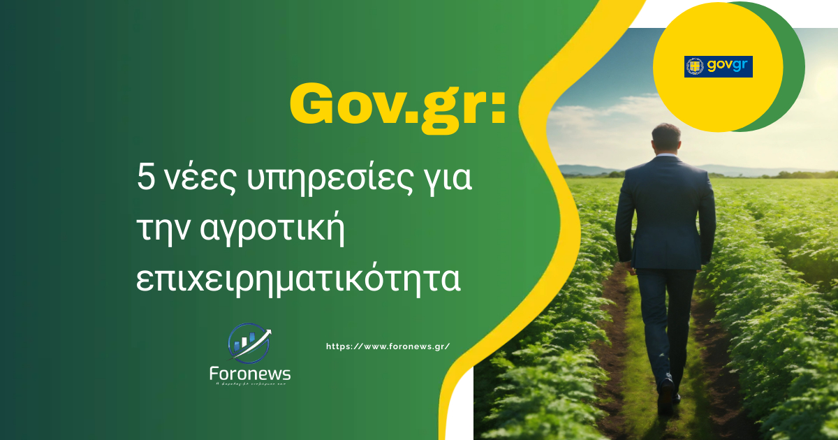Τη δυνατότητα να διεκπεραιώνουν μια σειρά από διαδικασίες άμεσα και εύκολα έχουν από σήμερα o αγροτικός κόσμος και φορείς του Δημοσίου με την προσθήκη πέντε νέων υπηρεσιών στο gov.gr.
