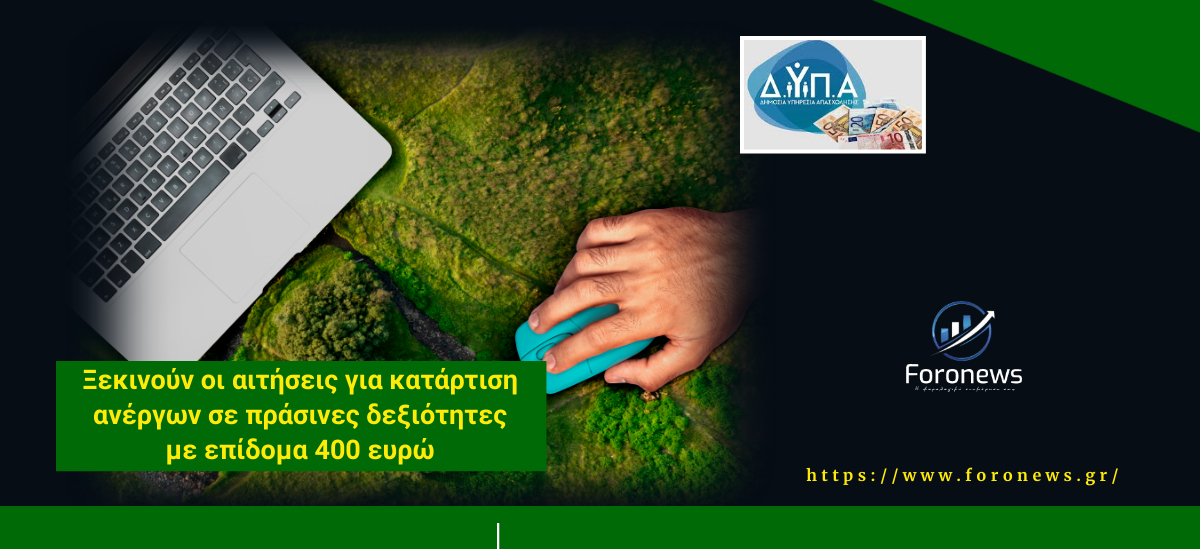 Ξεκινάει από σήμερα Πέμπτη 6 Ιουνίου και ώρα 14:00 η υποβολή αιτήσεων ανέργων για συμμετοχή στο νέο πρόγραμμα απόκτησης και αναβάθμισης πράσινων δεξιοτήτων της ΔΥΠΑ.