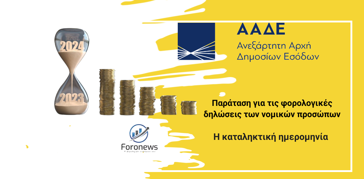 Με απόφαση του Διοικητή της ΑΑΔΕ, Γιώργου Πιτσιλή, μετατίθεται για τις 26/7/2024 η προθεσμία υποβολής φορολογικών δηλώσεων των νομικών προσώπων, ώστε η προθεσμία υποβολής να συμπίπτει με την προθεσμία των δηλώσεων των φυσικών προσώπων.
