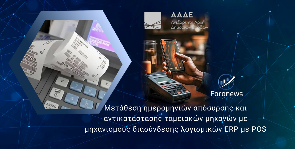 Με σκοπό τη διευκόλυνση των επιχειρήσεων να ανταποκριθούν στις παρακάτω υποχρεώσεις απόσυρσης/αντικατάστασης ταμειακών και μηχανισμών και διασύνδεσης λογισμικών ERP με POS, με αποφάσεις του Διοικητή της ΑΑΔΕ, Γιώργου Πιτσιλή μετατίθενται ως εξής οι παρακάτω καταληκτικές ημερομηνίες: