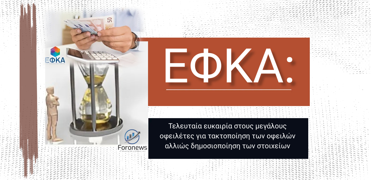 Τελευταία προειδοποίηση προς τους μεγάλους οφειλέτες απευθύνει ο ΕΦΚΑ προκειμένου να τακτοποιήσουν τις οφειλές τους και να αποφύγουν την δημοσιοποίηση των στοιχείων τους.