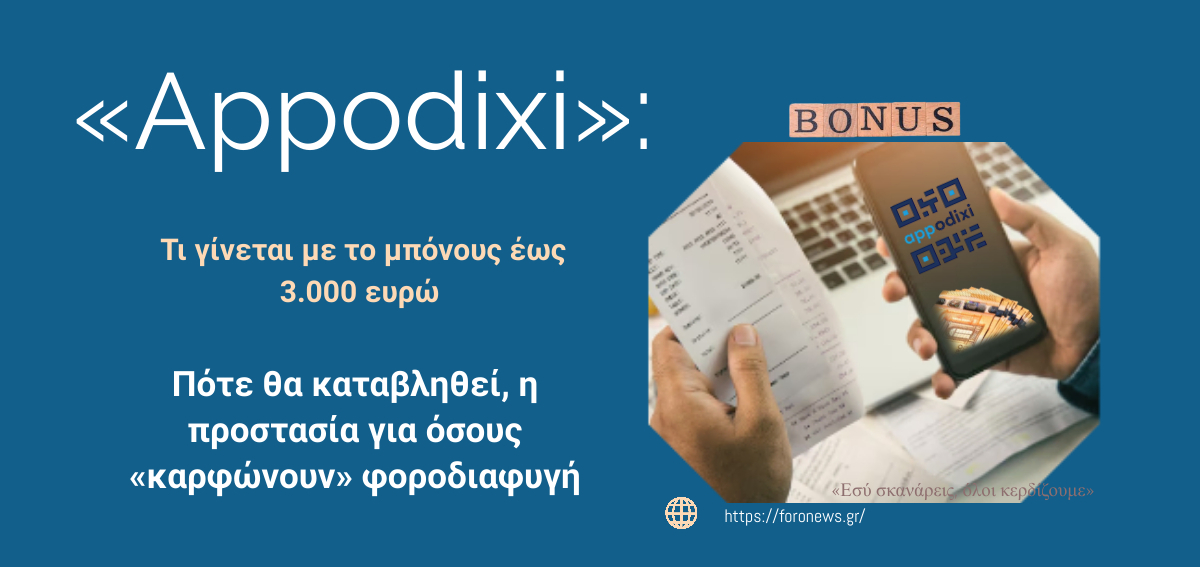Αν και το μέτρο της επιβράβευσης των φορολογούμενων που «καρφώνουν» μέσω του κινητού τους και της εφαρμογής «Αppodixi» περιπτώσεις φοροδιαφυγής ισχύει από τις 11 Δεκεμβρίου 2023, ημερομηνία δημοσίευσης στο ΦΕΚ του νέου φορολογικού νόμου, μέχρι σήμερα δεν έχει πάρει «σάρκα και οστά».