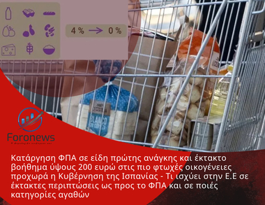 ■ Ισπανία: Κατάργηση του ΦΠΑ στα είδη πρώτης ανάγκης και έκτακτο βοήθημα ύψους 200 ευρώ στις πιο φτωχές οικογένειες