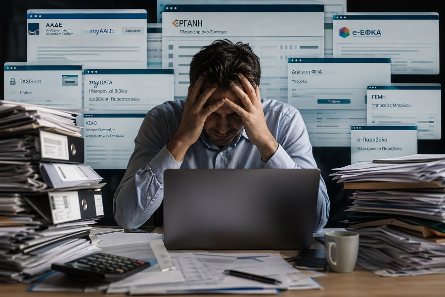 Ψηφιακή ασφυξία: Οι λογιστές στα όρια και η οικονομία σε τεντωμένο σχοινί Τα τελευταία χρόνια, η καθημερινότητα των επιχειρήσεων και των επαγγελματιών έχει μεταφερθεί σχεδόν ολοκληρωτικά στο ψηφιακό περιβάλλον.