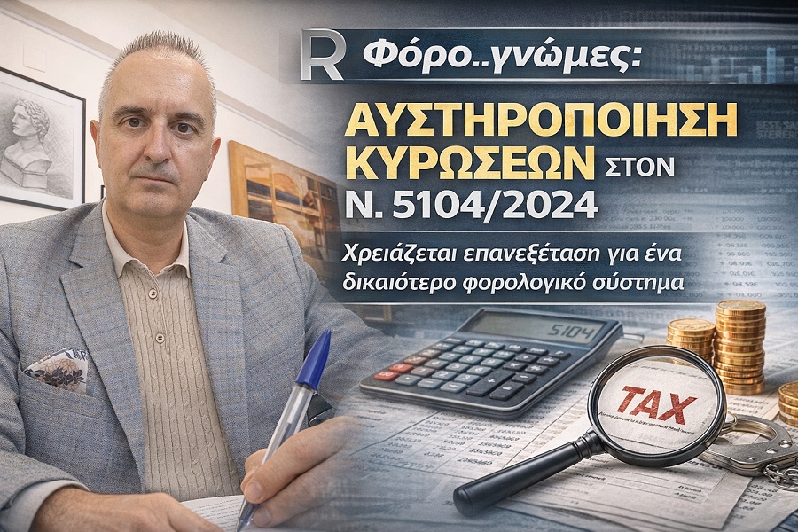 Φόρο..γνώμες: Αυστηροποίηση κυρώσεων στον ν. 5104/2024 - Χρειάζεται επανεξέταση για ένα δικαιότερο φορολογικό σύστημα Φορο…γνώμες Επικαιρότητα Η αυστηροποίηση των κυρώσεων που προβλέπονται στα άρθρα 53 και 54 του ν. 5104/2024 επαναφέρει στο προσκήνιο ένα κρίσιμο ερώτημα: οδηγεί πράγματι σε μεγαλύτερη φορολογική συμμόρφωση ή δημιουργεί ένα πλαίσιο δυσανάλογων επιβαρύνσεων, ιδίως για τους συνεπείς φορολογούμενους; Η εμπειρία των πρώτων μηνών εφαρμογής δείχνει ότι, σε αρκετές περιπτώσεις, η αυστηρότητα λειτουργεί περισσότερο τιμωρητικά παρά διορθωτικά, υπονομεύοντας την αίσθηση δικαιοσύνης και ασφάλειας δικαίου. ■ Όταν η κύρωση δεν λαμβάνει υπόψη το πραγματικό αποτέλεσμα Ένα βασικό ζήτημα των άρθρων 53 και 54 είναι ότι οι κυρώσεις επιβάλλονται ανεξάρτητα από το αν προκλήθηκε πραγματική ζημία στο Δημόσιο. Παράδειγμα – τι ισχύει σήμερα Επιχείρηση υποβάλλει δήλωση φόρου με ορθή φορολογική βάση, αλλά με εσφαλμένο χαρακτηρισμό δαπάνης, ο οποίος δεν μεταβάλλει το τελικό φορολογικό αποτέλεσμα. Παρά το γεγονός ότι ο φόρος έχει υπολογιστεί και καταβληθεί σωστά, η παράβαση αντιμετωπίζεται με επιβολή διοικητικού προστίμου λόγω τυπικής μη συμμόρφωσης. ► Τι θα έπρεπε να ισχύει: Σε περιπτώσεις όπου αποδεικνύεται ότι: → δεν επηρεάζεται ο υπολογισμός του φόρου και → δεν προκύπτει απώλεια δημοσίων εσόδων, η κύρωση να περιορίζεται σε διοικητική σύσταση ή προειδοποίηση, χωρίς χρηματική επιβάρυνση, ιδίως όταν ο φορολογούμενος προβαίνει άμεσα σε διόρθωση. ■ Η απουσία «βαθμίδας» μεταξύ μικρού λάθους και σοβαρής παράβασης Το ισχύον πλαίσιο δεν προβλέπει επαρκή κλιμάκωση. Παράδειγμα – τι ισχύει σήμερα Φορολογούμενος παραλείπει να υποβάλει εγκαίρως μια πληροφοριακή δήλωση, η οποία δεν επηρεάζει τον υπολογισμό φόρου. Η κύρωση επιβάλλεται με σταθερό τρόπο, χωρίς να εξετάζεται η ουσία της παράβασης. ►Τι θα έπρεπε να ισχύει: Να υιοθετηθεί κλιμακωτό σύστημα, όπου: → οι καθαρά πληροφοριακές παραλείψεις αντιμετωπίζονται ήπια, → ενώ οι παραβάσεις με φορολογικό αποτέλεσμα τιμωρούνται αυστηρότερα. ■ Πίνακας σύγκρισης: Τι ισχύει σήμερα και τι προτείνεται Ζήτημα Τι ισχύει σήμερα Τι προτείνεται Διάκριση παραβάσεων Ίδια μεταχείριση τυπικών και ουσιαστικών παραβάσεων Ρητή διάκριση με βάση τη βαρύτητα και το αποτέλεσμα Πρόθεση φορολογουμένου Δεν λαμβάνεται ουσιαστικά υπόψη Διαχωρισμός ακούσιου λάθους και δόλου Πρώτη παράβαση Επιβολή προστίμου άμεσα Προειδοποίηση και προθεσμία συμμόρφωσης Διόρθωση λάθους Η κύρωση παραμένει ακόμη και μετά τη διόρθωση Μείωση ή άρση προστίμου σε άμεση διόρθωση Οικονομική αδυναμία Περιορισμένη ευελιξία Δυνατότητα μείωσης ή διαγραφής προστίμου Διαφάνεια Ενημέρωση εκ των υστέρων Προληπτικές ειδοποιήσεις και ψηφιακοί οδηγοί ■ Η ανάγκη για διοικητική ευελιξία Η πλήρης αυτοματοποίηση της επιβολής κυρώσεων περιορίζει τη δυνατότητα στάθμισης πραγματικών συνθηκών. Παράδειγμα – τι ισχύει σήμερα: Επαγγελματίας που συμμορφώνεται επί σειρά ετών τιμωρείται με πρόστιμο για μεμονωμένο σφάλμα, χωρίς να λαμβάνεται υπόψη το ιστορικό συνέπειας. ►Τι θα έπρεπε να ισχύει: Η ΑΑΔΕ να έχει θεσμική δυνατότητα να συνεκτιμά: → το ιστορικό συμμόρφωσης, → τη συχνότητα των παραβάσεων, → και τη συνεργασία του φορολογουμένου. ■ Διαφάνεια και πρόληψη αντί καταστολής Η πρόληψη παραβάσεων είναι συχνά αποτελεσματικότερη από την τιμωρία τους. Παρ