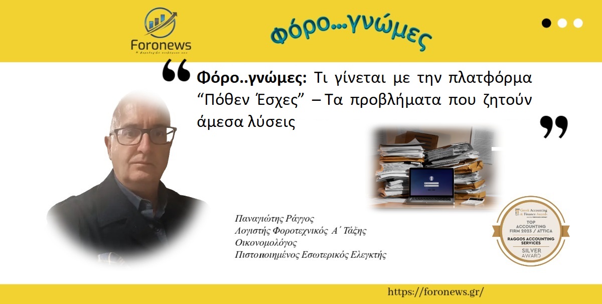 Φόρο..γνώμες: Τι γίνεται με την πλατφόρμα “Πόθεν Έσχες” – Τα προβλήματα που ζητούν άμεσα λύσεις Η πλατφόρμα Πόθεν Έσχες για τη χρήση του έτους 2022 άνοιξε στις 7 Νοεμβρίου και η πλατφόρμα για τη χρήση του 2023 άνοιξε στις 18 Νοεμβρίου 2024. Άνοιξε όμως; Στην ουσία δεν άνοιξε ποτέ. Στις 21 Νοεμβρίου 2024 βγήκε επίσημη ανακοίνωση ότι δεν θα μπορεί να οριστικοποιηθεί η πλατφόρμα παρά μόνο η αποθήκευση. Γιατί όλα αυτά; Για να ανεβάσουν τα τραπεζικά ιδρύματα τα νέα επικαιροποιημένα δεδομένα. Δύο χρόνια καθυστέρησης και πάλι τα δεδομένα δεν ήταν στην θέση τους. Η πλατφόρμα είχε ανοίξει στις 18 Νοεμβρίου, αλλά λόγω τεχνικών προβλημάτων, ήταν αδύνατη η πρόσβαση για χιλιάδες υπόχρεους του Πόθεν Έσχες ώστε να υποβάλουν τις αρχικές δηλώσεις περιουσιακής κατάστασης. Άνοιξε η ηλεκτρονική πλατφόρμα για την υποβολή, από τους/τις υπόχρεους και τις/τους συζύγους τους, των ετήσιων Δηλώσεων Περιουσιακής Κατάστασης Πόθεν Έσχες του 2024 που αφορούν στην περιουσιακή κατάσταση που είχαν το 2023. Η πολυήμερη καθυστέρηση όπως αναφέρθηκε προέκυψε λόγω τεχνικών αναβαθμίσεων της Γενικής Γραμματείας Πληροφοριακών Συστημάτων αλλά και καθυστέρησης διαβίβασης στοιχείων για αρκετούς από τους 300.000 υπόχρεους από μικρές, κυρίως, τράπεζες. Τι περιλαμβάνει η πλατφόρμα Υπενθυμίζεται ότι μέσω της νέας πλατφόρμας Πόθεν Έσχες είναι ήδη διαθέσιμη η υποβολή ετήσιων δηλώσεων για το έτος 2023 (χρήση 2022). Επίσης, με αρχή τις φετινές δηλώσεις Πόθεν Έσχες, οι υπόχρεοι /ες θα πρέπει να γνωρίζουν ότι πλέον πρέπει να υποβάλουν ξεχωριστή δήλωση και οι σύζυγοι των υπόχρεων. Για πρώτη φορά φέτος η ηλεκτρονική πλατφόρμα θα περιλαμβάνει σημαντικές αλλαγές για τη συμπλήρωση του Πόθεν Έσχες σε σχέση με προηγούμενα έτη. Η πιο σημαντική αλλαγή, σύμφωνα με τον σχεδιασμό, είναι ότι όλα τα στοιχεία της περιουσιακής κατάστασης των φορολογούμενων , εισοδήματα, ακίνητα, καταθέσεις, επενδυτικά προϊόντα – θα μπορούν να αντληθούν αυτόματα μέσω αρχείων για κάθε φορολογούμενο που διατηρούν αρμόδιοι φορείς του δημοσίου (ΑΑΔΕ κλπ), τράπεζες, Μητρώο οχημάτων υπουργείου Υποδομών, και Επιμελητήρια(ΓΕΜΗ) και άρα θα είναι προσυμπληρωμένα. Έτσι ο υπόχρεος δεν χρειάζεται να συλλέγει ο ίδιος τα περιουσιακά του στοιχεία ωστόσο όμως υποχρεούται να επιβεβαιώνει την ορθότητά τους πριν την αποδοχή και αποστολή της δήλωσης περιουσιακής κατάστασης. Καταληκτική ημερομηνία για την υποβολή των δηλώσεων για τα έτη 2022 και 2023, όπως και για τους υπόχρεους αρχικών δηλώσεων περιουσιακής κατάστασης είναι η 31/12/2024. Όποιος δεν υποβάλλει δήλωση η υποβάλλει ανακριβή η ελλιπή περιουσιακά στοιχεία αντιμετωπίζει βαριά πρόστιμα έως και φυλάκιση ανάλογα με την κάθε περίπτωση. Τα προβλήματα Όλα αυτά είναι βέβαια σχέδια επί χάρτου. Στην πράξη η πλατφόρμα παρουσιάζει και μετά την επικαιροποίηση πολλά προβλήματα. Ποια είναι αυτά; Ελλείψεις τραπεζικών στοιχείων, ελλιπή στοιχεία υπόχρεων, τα στοιχεία χρειάζονται τριπλοτσεκάρισμα άρα χάσιμο χρόνο, στις συμμετοχές ή στους τίτλους ζητά αρχική αξία κτήσης οπότε θα πρέπει ο υπόχρεος να ζητήσει από το τραπεζικό ίδρυμα εικόνα. Επίσης σε πολλές περιπτώσεις υπάρχουν ελλείψεις στοιχείων ΙΧ επιβατικών αυτοκινήτων του υπόχρεου. Υπάρχουν ελλιπή στοιχεία σε ακίνητα. Θα πρέπει να συμπληρωθούν ώστε να γίνει αποθήκευση και οριστικοποίηση. Αυτά είναι ενδεικτικά μερικά προβλήματα που έχουν διαπιστωθεί. Όμως 