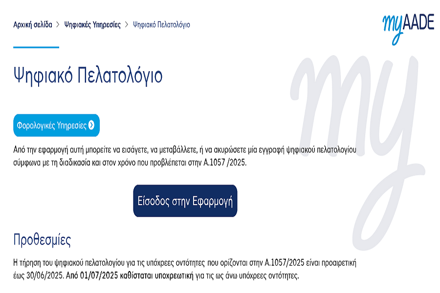 Ψηφιακό πελατολόγιο: Ποιοι νέοι κλάδοι θα μπουν στην υποχρεωτική εφαρμογή - Το χρονοδιάγραμμα και οι πιθανοί ΚΑΔ Νέα Επικαιρότητα Η επέκταση αυτή αναμένεται να εφαρμοστεί αμέσως μετά το Πάσχα / πριν την έναρξη του τουριστικού καλοκαιριού 2026, σύμφωνα με νέα πλάνα της ΑΑΔΕ. ■ Ιστορικό Στην πρώτη φάση (2025), η υποχρεωτική τήρηση ψηφιακού πελατολογίου ξεκίνησε ήδη για: Συνεργεία αυτοκινήτων Φανοποιεία Πλυντήρια αυτοκινήτων Parking / Χώρους στάθμευσης Ενοικιάσεις αυτοκινήτων ■ Τι σημαίνει πρακτικά Οι επιχειρήσεις που μπαίνουν στην υποχρεωτική λίστα πρέπει: να καταγράφουν ψηφιακά κάθε πελατειακή συναλλαγή, να διασυνδέουν τα στοιχεία με την πλατφόρμα myAADE / myDATA, και να στέλνουν τα δεδομένα σε πραγματικό χρόνο στην ΑΑΔΕ για διασταύρωση και έλεγχο. ■ Πιθανοί ΚΑΔ που θα ενταχθούν στο ψηφιακό πελατολόγιο Γάμοι – Βαπτίσεις – Εκδηλώσεις > 96.09.19.01 Υπηρεσίες οργάνωσης γάμων και κοινωνικών εκδηλώσεων > 82.30.11.00 Υπηρεσίες διοργάνωσης συνεδρίων και εμπορικών εκθέσεων > 82.30.12.00 Υπηρεσίες διοργάνωσης κοινωνικών εκδηλώσεων Χώροι δεξιώσεων – κτήματα > 56.10.11.06 Υπηρεσίες εστίασης σε αίθουσες δεξιώσεων > 56.21.19.00 Άλλες υπηρεσίες τροφοδοσίας για εκδηλώσεις > 93.29.19.03 Εκμετάλλευση χώρων για εκδηλώσεις (κτήματα, αίθουσες) Catering – Εστίαση εκδηλώσεων > 56.21.11.00 Υπηρεσίες catering για εκδηλώσεις > 56.21.12.00 Υπηρεσίες μαζικής εστίασης κατόπιν σύμβασης ■ Σημείωση Η ΑΑΔΕ δεν έχει ακόμη δημοσιεύσει επίσημη λίστα ΚΑΔ. Παναγιώτης Ράγγος Λογιστής Φοροτεχνικός Α΄ Τάξης - Οικονομολόγος Πιστοποιημένος Εσωτερικός Ελεγκτής Previous Next