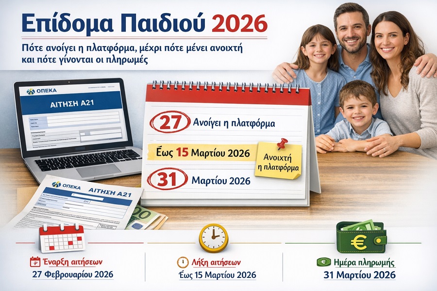 Επίδομα Παιδιού Α21 2026 – Πότε ανοίγει η πλατφόρμα, μέχρι πότε θα είναι ανοιχτή και πότε θα γίνει η πρώτη πληρωμή Νέα Επικαιρότητα Το επίδομα παιδιού Α21 αποτελεί σημαντική οικονομική ενίσχυση για χιλιάδες ελληνικές οικογένειες. Για το 2026 η αντίστροφη μέτρηση έχει ξεκινήσει και η νέα περίοδος αιτήσεων αναμένεται να ενεργοποιηθεί πολύ σύντομα. Πότε ανοίγει η πλατφόρμα για το Α21 2026 Η ηλεκτρονική πλατφόρμα για την υποβολή νέων αιτήσεων Α21 για το έτος 2026 αναμένεται να ανοίξει έως το τέλος Φεβρουαρίου 2026. Αυτό σημαίνει ότι μέσα στις επόμενες ημέρες (μέχρι το τέλος του μήνα) οι γονείς και οι κηδεμόνες θα μπορούν να μπουν στο σύστημα και να υποβάλουν αίτηση. → Η πλατφόρμα θα ενεργοποιηθεί μέχρι τα μέσα Μαρτίου 2026 για να δοθεί επαρκής χρόνος σε όλους να ολοκληρώσουν την αίτηση και να διορθώσουν πιθανά στοιχεία πριν την οριστική υποβολή. Αυτό σημαίνει πρακτικά: Ανοίγει τέλη Φεβρουαρίου 2026 Θα είναι διαθέσιμη περίπου έως τα μέσα Μαρτίου 2026 Μετά από αυτή την περίοδο γίνεται η εκκαθάριση των στοιχείων για τις πληρωμές Πότε θα γίνει η πρώτη πληρωμή για το 2026 Η πρώτη διμηνιαία πληρωμή του έτους 2026, που αφορά το δίμηνο Ιανουαρίου – Φεβρουαρίου, θα καταβληθεί στις 31 Μαρτίου 2026. Αυτή είναι η πρώτη από τις συνολικά έξι διμηνιαίες δόσεις που προβλέπονται για το επίδομα παιδιού μέσα στο έτος, και κάθε δόση αντιστοιχεί σε διαφορετικό δίμηνο (Ιαν–Φεβ, Μαρ–Απρ, Μαι–Ιουν κ.λπ.). → Σημείωση: Η πληρωμή θα γίνει μόνο αν η αίτηση έχει οριστικοποιηθεί πριν την ημερομηνία ολοκλήρωσης της πλατφόρμας. Αιτήσεις που παραμένουν προσωρινά αποθηκευμένες δεν θεωρούνται ολοκληρωμένες και δεν λαμβάνονται υπόψη για πληρωμή. Συνοπτικά οι ημερομηνίες Στοιχείο Ημερομηνία (2026) Άνοιγμα πλατφόρμας Α21 Έως τέλος Φεβρουαρίου Προθεσμία για την αίτηση Περίπου έως μέσα Μαρτίου Πρώτη πληρωμή (Ιανουάριος–Φεβρουάριος) 31 Μαρτίου Τι πρέπει να προσέξετε Η αίτηση γίνεται ηλεκτρονικά μέσω της πλατφόρμας του ΟΠΕΚΑ και της ΗΔΙΚΑ με κωδικούς Taxisnet. Πρέπει να ελέγξετε ότι τα στοιχεία σας (εισοδήματα, ΑΜΚΑ, IBAN κ.λπ.) είναι ορθά πριν την οριστική υποβολή, γιατί λάθη μπορεί να καθυστερήσουν ή να μπλοκάρουν την πληρωμή. Η έγκαιρη και σωστή υποβολή εξασφαλίζει ότι θα λάβετε την πρώτη και όλες τις επόμενες δόσεις για το 2026. Παναγιώτης Ράγγος Λογιστής Φοροτεχνικός Α΄ Τάξης - Πιστοποιημένος Εσωτερικός Ελεγκτή Previous Next